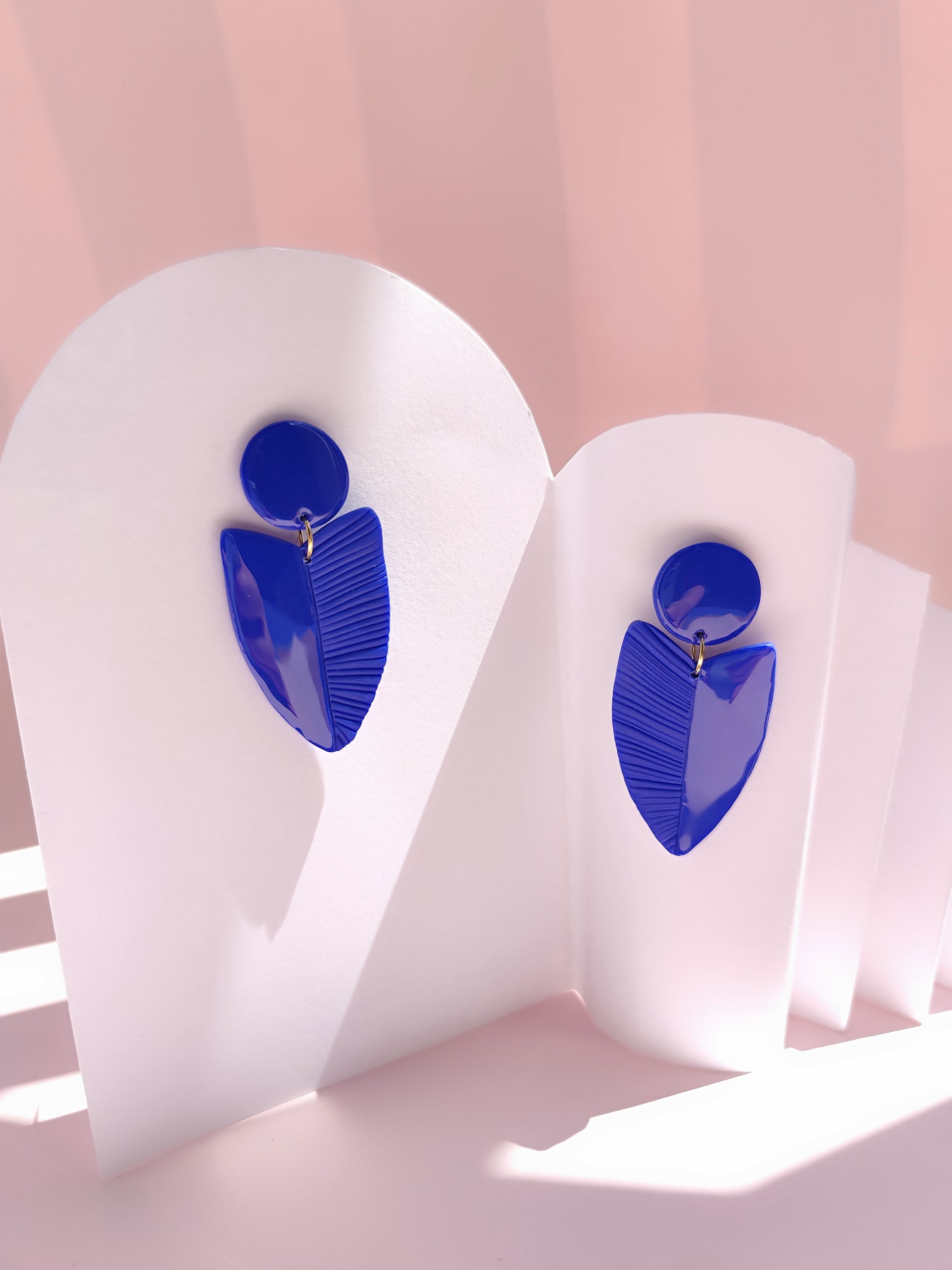 Paraíso Azul Klein une formas orgánicas con un color intenso y vibrante, inspirado en el cielo eléctrico del trópico. Hechos a mano en nuestro taller con arcilla polimérica, pieza a pieza, y con mucho mimo.