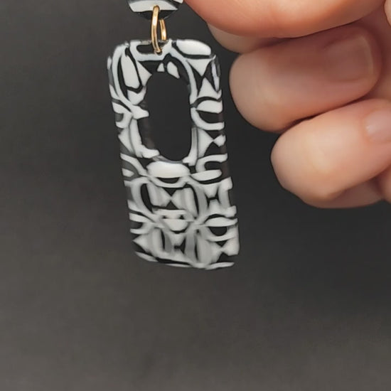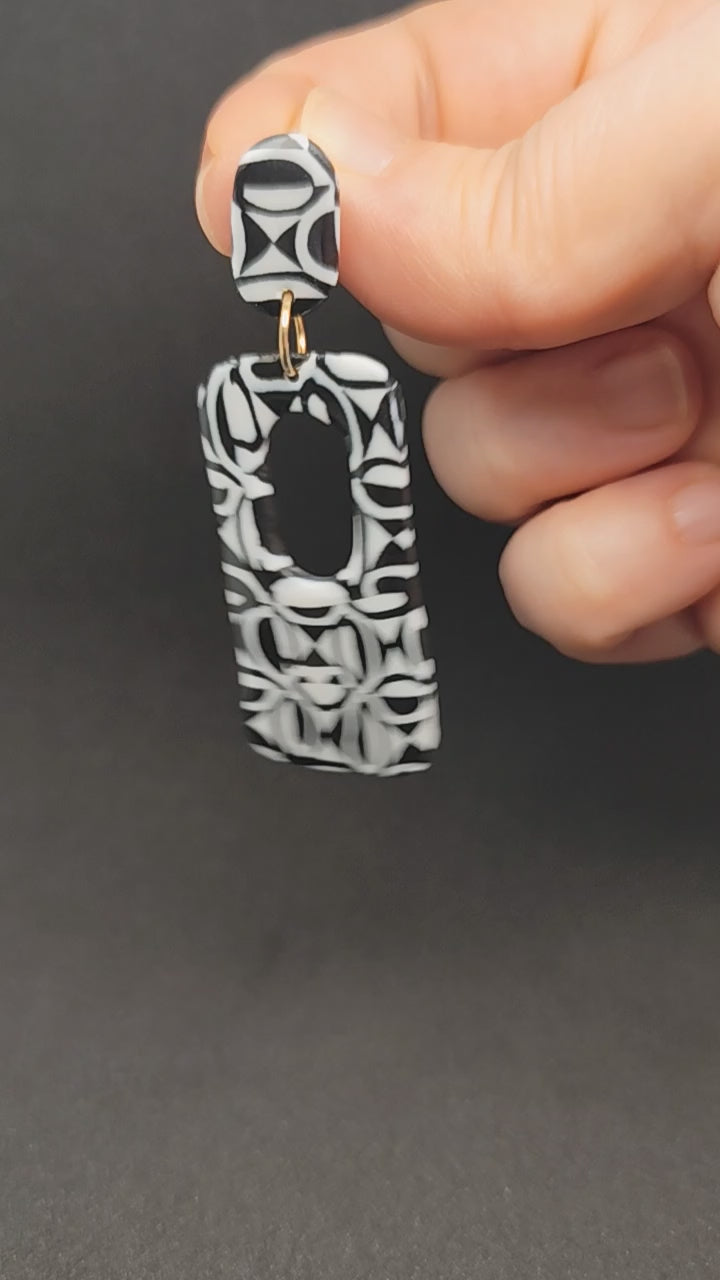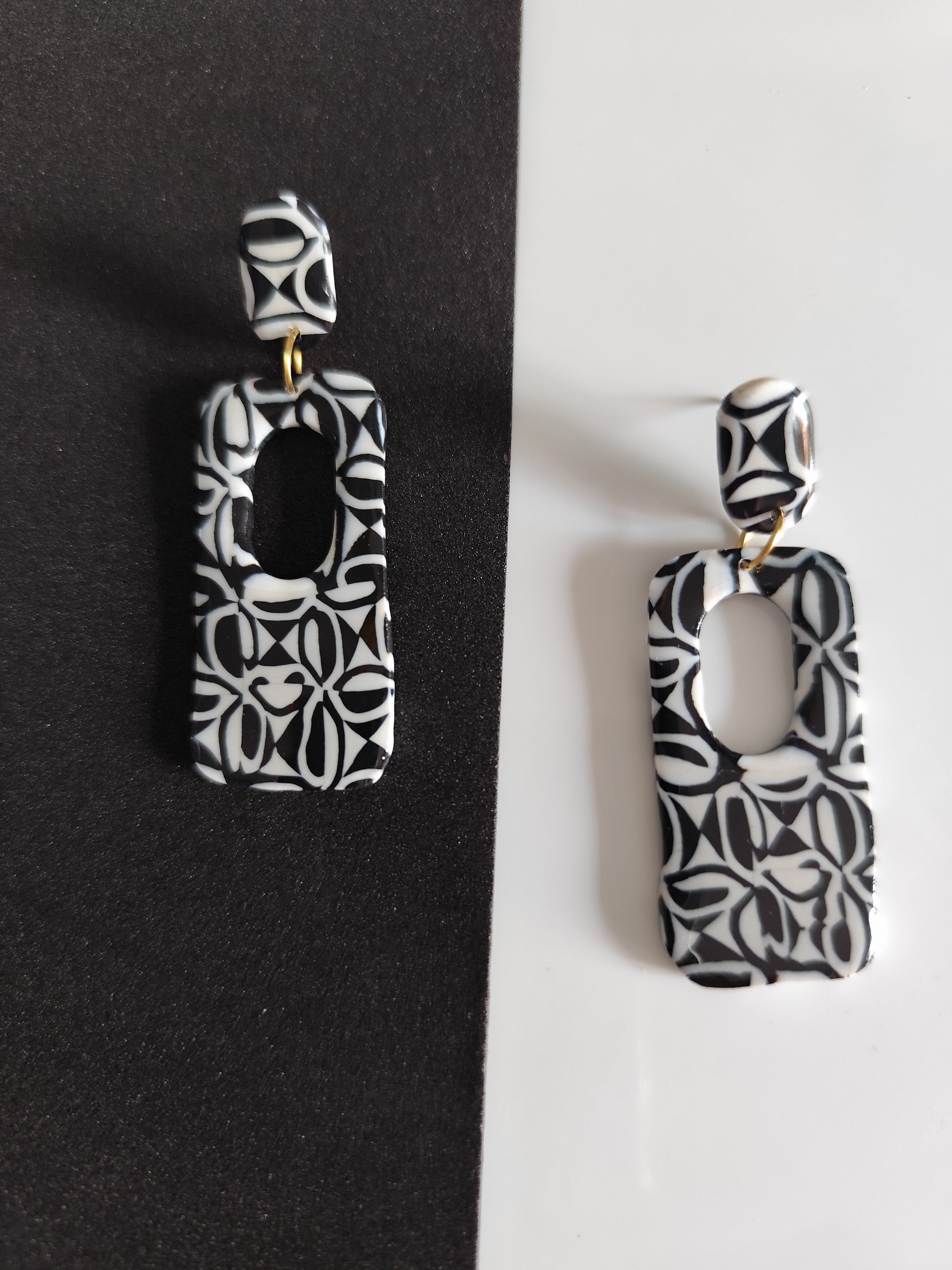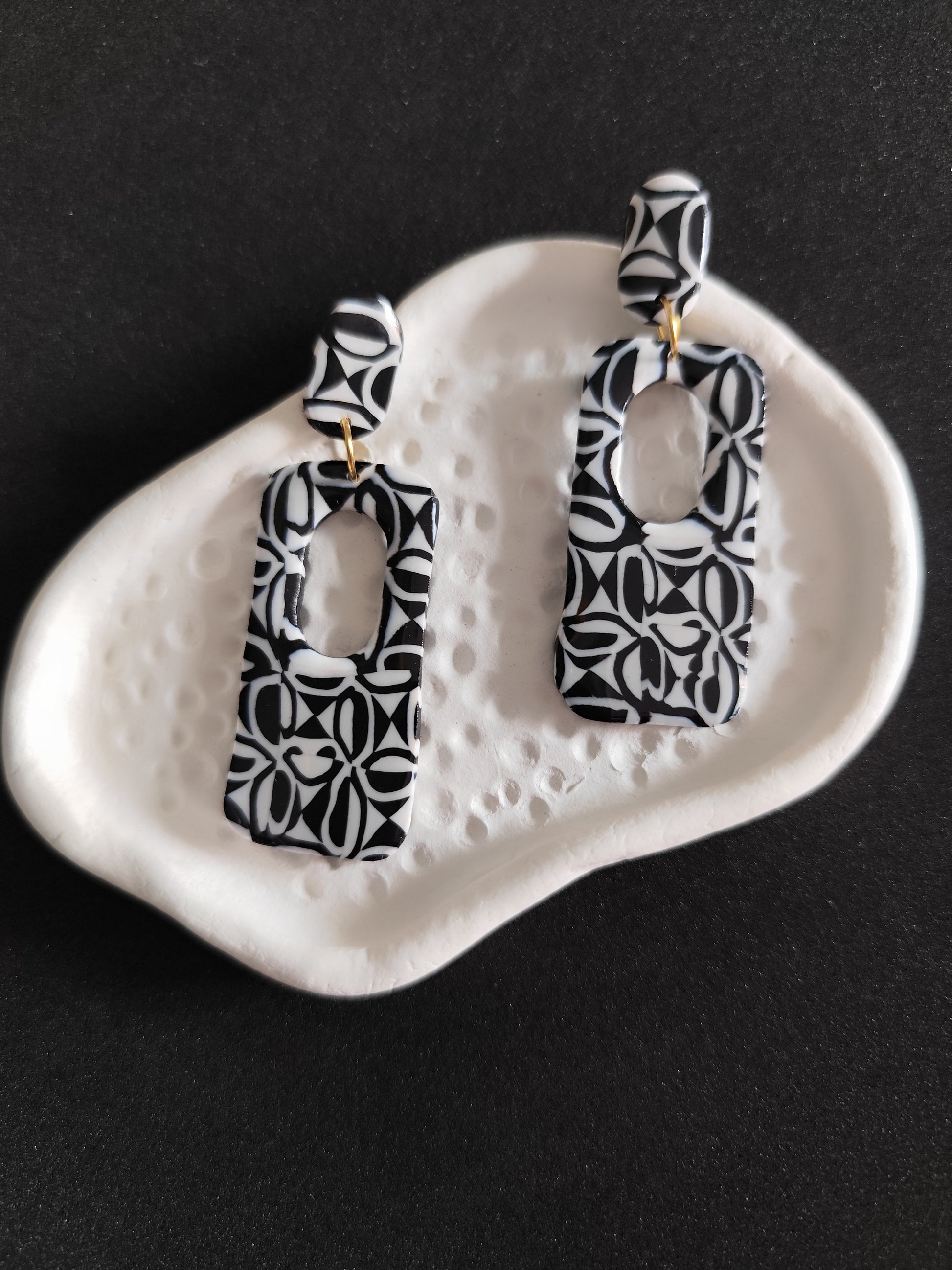 Orbit destaca por su diseño alargado y su patrón gráfico geométrico que aporta movimiento visual. Hechos a mano en nuestro taller, con arcilla polimérica de alta calidad, combinan ligereza y estilo en cada detalle.